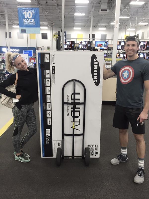 This year is his 30th. And we’ll spend the day in the SUN together, at the beach and working OUT because that’s what we love. But the other day…. BEING ABLE to walk into Best Buy after having watched him look at, compare, price out, save up, and research TV’s FOR 4 YEARS and say “I GOT THIS FOR YOU BABE, HAPPY BIRTHDAY and NO we don’t want to hear your finance options…” and not get a sinking pit feeling in my stomach when I swiped the card… Well that, was PRICELESS.